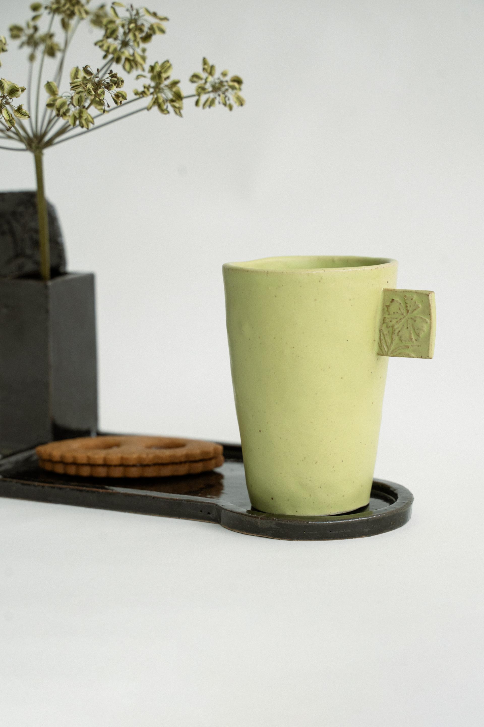 작은 간식과 찻잔을 올려 사용할 수 있는 티 플레이트 입니다. 함께 붙어있는 작은 화병에 꽃을 꽂거나 티포크를 담아 즐겨주세요.